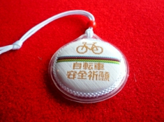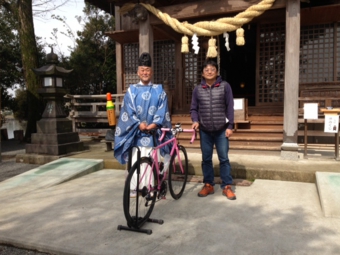 浮島神社オリジナルの自転車守りをお渡しします。
