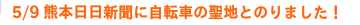 熊本発の自転車Webマガジン『Green Ride』に《自転車神主のおなかいっぱい》という駄文をアップしました。