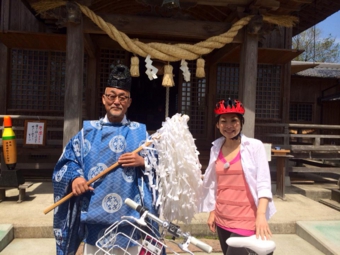 著者も自転車乗りで、単行本化にあたって専門家の神職に読んでもらいたいという思いに駆られネットで検索したところ浮島神社に辿り着いたということでした。