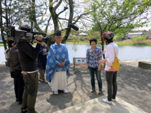僕自身も浮島神社も隙間産業なので「よろこんで!」協力させていただきました。記者さんも自転車乗りで、映画で設定されている大会コースを実際走って仕上げるという手のこったものだそうです。