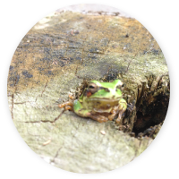 おととし切り倒した木株の穴にアマガエルが入り込んで、ゆったとしておりました。動画をとりました。