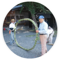 医薬や農薬の十分でない千年前、夏の暑い時期の病気や秋の収穫を阻害する害虫は命取りでした。たしかにごろ合わせ的な不確かさはありますが、現代の常識をもって、私達の親達が取り組んできた伝統をジャッジすることはできません。この64本の貧弱な茅の輪は、伝え行く大事な祭りです。続けてきたこの糸を次代に繋げていきたいと願っております。