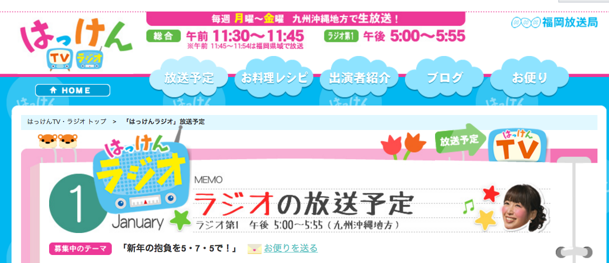 来年1月4日午後5時10分ぐらいから7分間ぐらい福岡NHK「はっけんっラジオ」で1月7日の「七草粥祭」の紹介を放送させていただきます。福岡の皆さん、どうか聞いてくださいまし。