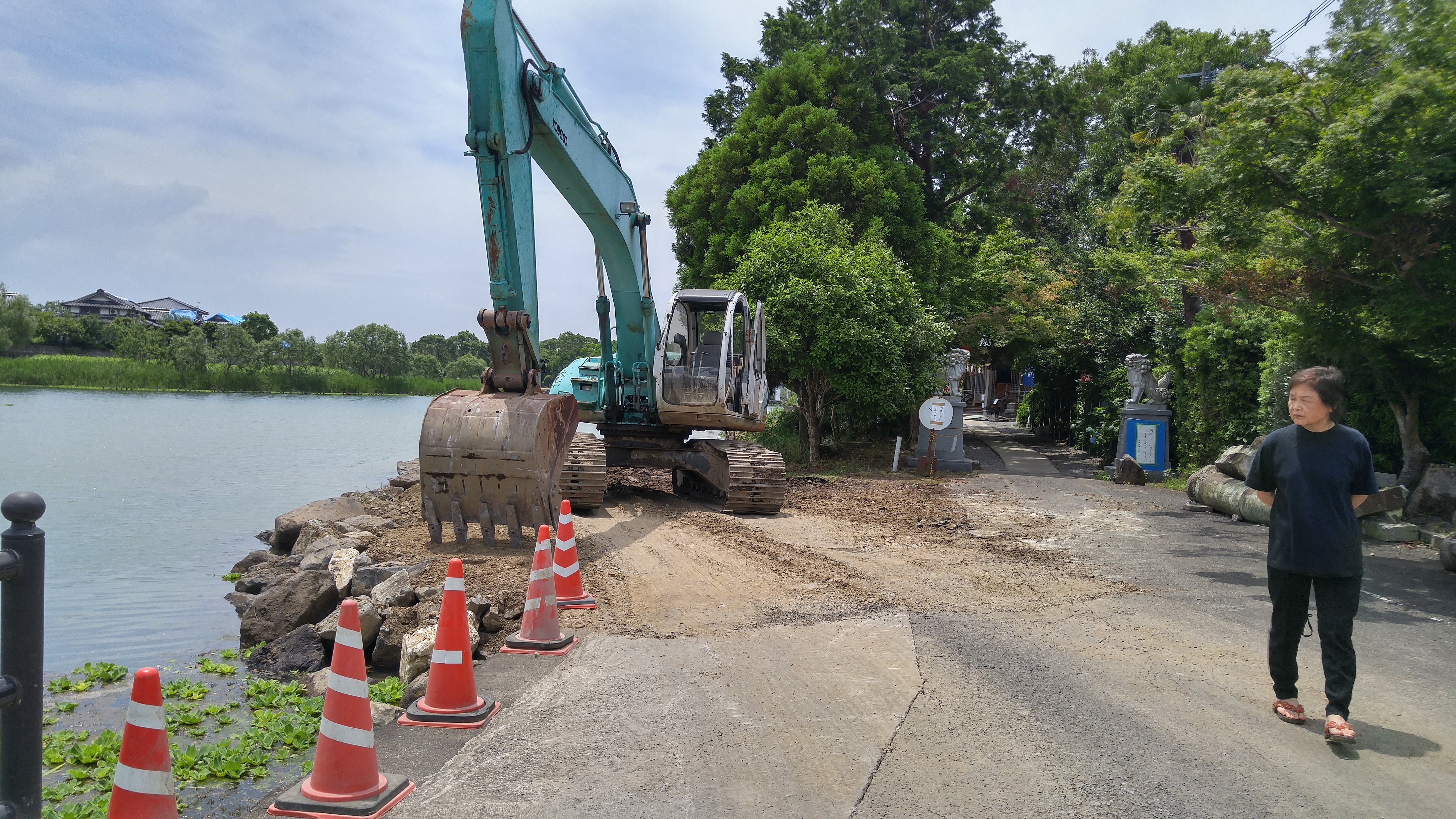 おかげをもちまして神社の土地が流出、水没しないための護岸工事もすでに進行中です。